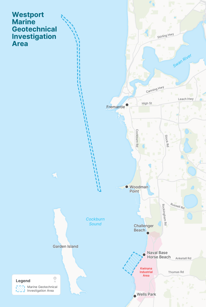 The investigations will be conducted throughout the proposed port terminal footprint area and navigation channel (see map). A tugboat will move the jack-up barges progressively through the area to ensure sufficient ground samples are collected across the site.